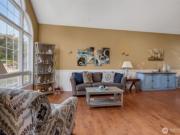 Welcome to island living in sought-after Tapps Island! This spacious 2-story home is filled with natural light, soaring ceilings, and generously sized rooms designed for comfort and connection. The open layout flows beautifully for entertaining, with multiple living areas, a bright kitchen, and flexible game/bonus space. Spacious primary with en suite including dual walk-in closet, walk-in shower and soaking tub. Brand new furnace/heat pump combo. Enjoy lake and mountain views, community amenities including golf, clubhouse, parks, boat launch, plus RV parking and a fenced yard for all your Northwest adventures.
