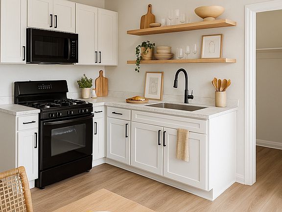 Modern hardwareUpdated lightingLight wood flooringGas stoveAbundant counter spaceBrand-new cabinetry