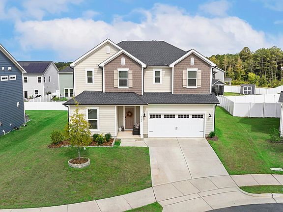 Beautiful home in sought-after Belterra, perfectly located on a quiet cul-de-sac with easy access to US-1, the Triangle Expressway, Jordan Lake, Apex Nature Park, Holly Springs, and downtown Apex. Enjoy outdoor living with a covered front porch, screened porch, and an attached garage. Inside, the main level features luxury vinyl flooring, an open-concept family and dining room, and a gourmet kitchen with stainless steel appliances, abundant cabinetry, tile backsplash, recessed lighting, walk-in pantry, and breakfast area. A guest bedroom and full bath on the main level offer added flexibility, along with a mudroom and drop zone. Upstairs includes a spacious loft, laundry room, three secondary bedrooms, a full bath, and a luxurious owner's suite with a walk-in closet, double vanity, tiled shower, garden tub, and water closet. Neighborhood amenities include a pool, playground, and sidewalks that connect to the American Tobacco Trail!
