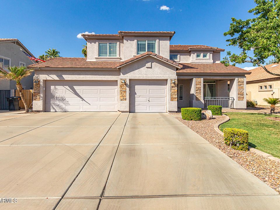 Beautifully maintained 5-bed, 3-bath home with sparkling pool in Coronado Ranch—this one checks all the boxes: space, style, and outdoor fun! Enjoy a 3-car garage, RV gate, cozy porch, and lush backyard with built-in BBQ and play space. Inside, tile & wood-look flooring, plantation shutters, and neutral tones create a bright, airy feel. The spacious kitchen boasts quartz counters, 2 dishwashers, stainless appliances, walk-in pantry, and breakfast bar. Retreat to a vaulted primary suite with dual sinks. Located near top-rated schools, parks, splash pad, shopping, and dining with easy access to Loop 202. A perfect home in a vibrant, connected Gilbert community near the scheduled to come soon regional Park. Be amazed by the spacious backyard showcasing a covered patio, built-in BBQ, and an enticing pool with waterfall features. Don't miss!