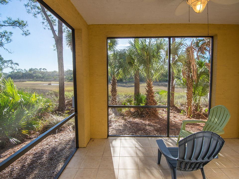 Take in the gorgeous marsh view and private location of this marsh front unit in Vista Cove Condominiums. Ground floor convenience, with views from most of the living area and the screened lanai. Freshly painted with tile throughout and plantation shutters in the living area and master bedroom. Spacious 3BR/2BA floorplan has master suite with walk-in closet and soaking tub. Guest bath has curb-free tiled shower so accessible for everyone! Great location just minutes from Historic Downtown! Near shopping and restaurants and just a short drive to the beach! This is maintenance free, Florida living at its best!