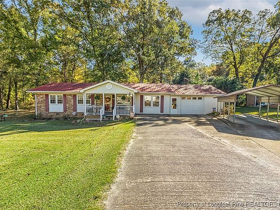 Built in 1965, this charming home is centrally located in Lee County, just outside the Sanford city limits. Offering 1,562 sq. ft. of living space, it features 3 bedrooms and 2 full baths. The property includes a 1-car garage with front and rear doors, allowing easy drive-through access to the backyard, plus a 12' x 19' metal carport and a 10' x 16' storage building for additional storage. The home sits on a .44-acre lot and includes an additional adjoining .46-acre parcel that can be sold separately. Together, the combined acreage totals approximately .91 acre—plenty of space for outdoor activities, gardening, or future expansion. If purchased separately, Lot 67 (approx. .46 acre) is priced at $45,000. Note: the asking price for this listing includes both lots. The fenced backyard is shaded by mature trees, creating a peaceful outdoor retreat. Conveniently located near Hwy 421 to the north, Swanns Station Rd to the south, Hwy US 1 to the west, and the town of Broadway to the east, this property offers quick access to employment centers, schools, shopping, restaurants, and medical facilities—everything you need just minutes away.