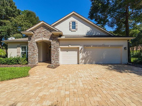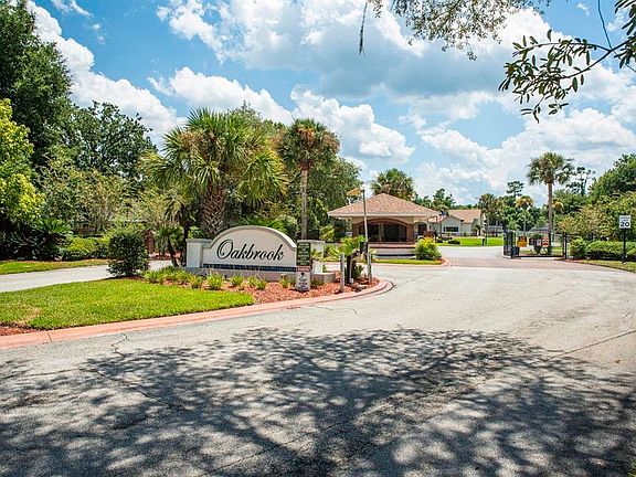 CHARMING 4BR/3BA TRADITIONAL HOME ON 1/2 ACRE & 3 CAR GARAGE IN OAKBROOK, A BEAUTIFULLY MAINTAINED GATED COMMUNITY WITH TREE LINED STREETS. Circular paved driveway leads to paved front porch with stone faced columns. Wide foyer leads to open floor plan featuring large kitchen with gas range, granite counters, lots of upgraded cabinets with molding, walk in pantry & island with sink & breakfast bar. Kitchen overlooks spacious great room and formal dining room with French doors leading to 11x27 screen lanai with new patio pavers. Tile floors throughout entire home & plantation shutters on all windows. Owner suite also has French doors leading to lanai, big walk in closet & luxurious bathroom with walk in shower & granite counters. Both 2nd & 3rd bedroom come with walk in closets & 1 has its own en suite bathroom. 4th bedroom & 3rd bathroom are conveniently located adjacent to 3 car garage & laundry room. Amenities include gated entry, clubhouse with pool, tennis & playground. 20 minutes to Crescent Beach; 10 minutes to shopping plazas & less than 20 min to all schools.