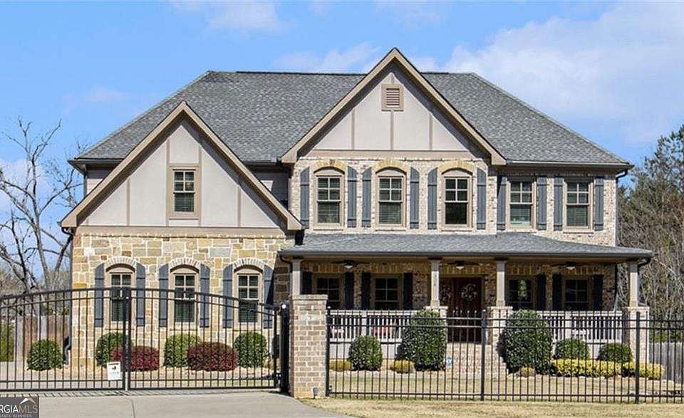 Welcome to a stunning stone-front custom-built residence, where every step of your journey through the home reveals another level of exquisite design and thoughtful detail. Upon entering through the private gated entrance, you are welcomed into an open-concept space boasting elegant coffered ceilings, a built-in fireplace, custom-designed bookshelves, and rich hardwood floors. The chefCOs kitchen is a masterpiece with granite countertops, exquisite Craftsman cabinetry, high-end stainless steel appliances, and a welcoming eat-in area. A spacious pantry with custom shelving, along with direct access to a large laundry room and two-car garage, adds to the functionality. The main level also features a refined separate dining room accentuated by coffered ceilings and wainscoting, plus a versatile den/office for your work or study needs. Step out onto the expansive deck designed for entertaining and relaxation, then wander into your private outdoor oasis. Set on half an acre of flat land, the exterior area is perfect for hosting gatherings with its custom-built fireplace, grill, and fire pitCoan ideal setting for both entertaining and tranquil evenings. Ascend to the upper level, where the home offers five generously sized bedrooms and three luxurious baths. The master suite is a true retreat featuring a cozy sitting area, a spa-inspired Georgia bath complete with a triple-headed shower, double vanity, separate tub, and an extra-large walk-in closetCoall complemented by elegant hardwood floors. Additional bedrooms feature ample storage solutions, including walk-in closets and pull-down attic stairs that overlook the main floor, adding both charm and practicality. Venture down to the basement, where complete plumbing and electrical systems set the stage for versatile use. This space offers the potential for an additional kitchen and bedroom, making it an ideal option for extended family living or as a lucrative rental opportunity. With separate heating and air conditioning units on each level, this exceptional three-level home ensures year-round comfort. DonCOt miss your opportunity to secure this exquisite dream home or rental property.