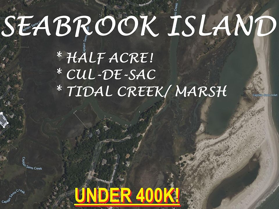 ****BEST AVA LOT ON ''SEABROOK ISLAND!!'' ** HALF ACRE!! ** PRIVATE SECLUDED CUL-DE-SAC LOT!! *** DID I MENTION IT HAS A SMALL TIDAL CREEK IN BACK, THAT LEADS DIRECTLY TO ''CAPTIN SAMS CREEK! (ENJOY A QUICK KAYAK OR PADDLE BOARD RIDE AT HIGH TIDE, OR GO CRABBING/SHRIMPING/FISHING WITH THE KIDS/GRANDKIDS!!** NOT TO MENTION BUILDING THE HOME OF YOUR DREAMS!! -- THIS LOT IS GOERGEOUS!! AND THE LOCATION IS EXCELLENT!! - THE PRICE... WELL, IT SPEAKS FOR IT'SELF, AS YOU CAN SEE.... --------------**Please See ''MORE''! (For Seabrook Info) - Tidal creek is small and goes dry at low tide, we do not believe dockability is possible. Some oaks may need to be removed at BUYER'S expense, Lot is PRICED TO SELL! --- ****Agents - PEASE NOTE! - Current seller inherited this lot..........They have had ALL the probate /title work completed, and they are ready to close. Unfortunately, they have NOT had any surveys nor investigations done on the lot. (Hence the below mkt pricing) - All Due Diligence will be the buyer's responsibility. -- SEABROOK ISLAND IS A PRIVATE, GATED COMMUNITY. TO GAIN ACCESS FOR SHOWINGS, AGENTS MUST HAVE A COMMERCIAL PASS OR PAY $15 AT THE GATE PER VISIT WITH YOUR POCKET LICENSE. Contribution to Capital within SIPOA upon the initial sale and resale is 1/2 of 1% of purchase price. $250 closing admin fee due at closing. Purchase also requires membership to Seabrook Island Club. Buyer to verify any and all information deemed important but not limited to: lot size, utilities, HOA fees and requirements, etc.