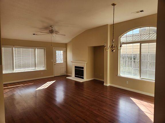 This single story home home features 3 bedrooms & 2 full bathrooms. Freshly painted two-tone interior throughout. Carpeted bedrooms & laminate/vinyl flooring in rest of the home. The primary suite has a walk-in closet. Living room has a gas fireplace. Attached two-car garage w/automatic opener. Central heating and air. Laundry hook-ups inside the home.