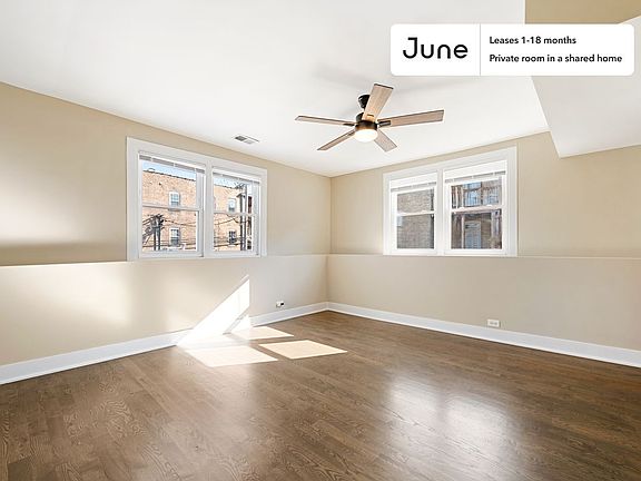 This Queen room in Logan Square is available on a 12 month lease or a flexible short term (31 to 364 days) lease. You pick your custom start and end date. Monthly rent rate is determined by furnishing preference, move-in date and move-out date. Speak to a June representative for recommendations on the best stay duration for the lowest rate.