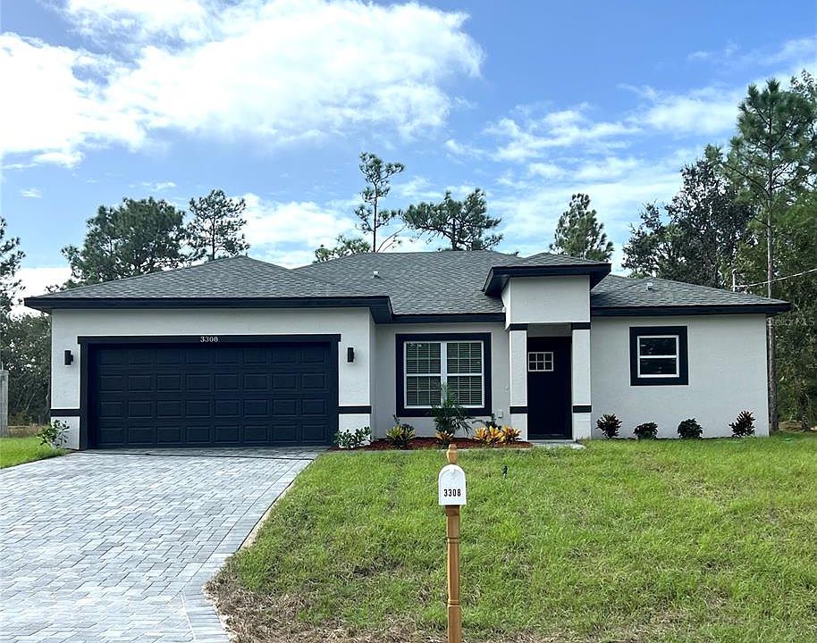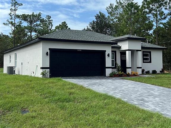 New Construction in Citrus Springs; Move-In Ready! Step into modern elegance with this stunning brand-new 4-bedroom, 2.5 -bath home thoughtfully designed for comfort and style. Featuring a bright open floor plan, this home is perfect for family gatherings and entertaining. The elegant kitchen is a showstopper, offering a central island, quartz countertops, stainless steel appliances (including refrigerator, stove, dishwasher, disposal, and microwave), and abundant cabinet space. The open living and dining areas flow seamlessly to the outdoors, where sliding doors lead to a covered lanai and a spacious backyard ideal for relaxing, entertaining, or even adding a pool. Inside, you and will find durable hard surface flooring throughout (no carpet!), beautifully tiled baths, and elegant finishes in every detail. Curb appeal shines with a brick paver driveway, complemented by a 2-car garage and security. Located in the peaceful community of Citrus Springs, this home offers easy access to shopping, dining, nature trails, and the Gulf Coast. Whether you are a first-time buyer, downsizing, or searching for a Florida retreat, this home checks all the boxes. Don't wait schedule your private showing today and make this beautiful new home yours