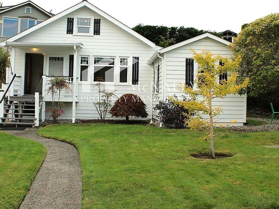 Step into the main level of this beautiful, renovated Craftsman home and enjoy approximately 1,200 sq ft of classic charm and modern upgrades. The spacious front room boasts a view of the Harbor and flows effortlessly into the bright galley kitchen with gorgeous countertops. Just off the kitchen is a sunroom, perfect for an office or dining space. The home features two cozy bedrooms and one updated bathroom. The hallway features custom built-ins for storage. The washer and dryer is included and an AC/Heat split unit for added comfort. Upstairs, savor an airy bonus space in the finished attic. Enjoy the convenience of two off-street parking spaces in the shared driveway. In the heart of Gig Harbor, this home is just steps away from local shops, restaurants, and the beauty of the waterfront. No Smoking and No Pets property. Applications are accepted only through McNally Property Management.