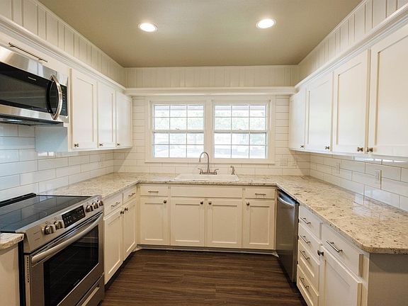 Totally updated and remodeled home with everything new! (and do mean everything). Four nice size bedrooms and both bathrooms were modernized with new paint,lighting, counter tops and fixtures. Beautiful curb appeal with large mature trees and easy care landscape in the front yard. Extra parking spaces, circular drive and set back two car garage give lots of space for visitors. Covered patio has access to living and master bedroom. Miller School elementary and shopping close by.