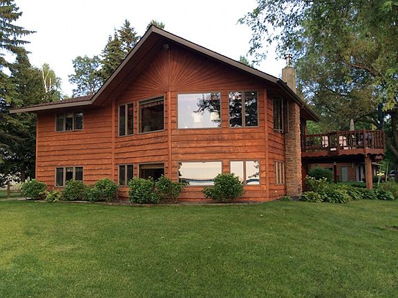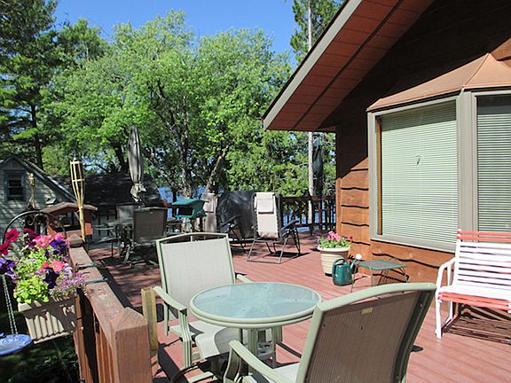 Rainy Lake home on deep lot with 100 feet of sand beach! Beautiful architecture with tongue & groove cathedral ceiling & large windows for amazing lake views. Plenty of open lawn, cozy guest cabin at waters edge, huge garage w/workshop, pole barn & mature trees along road for privacy. Don’t miss this one.