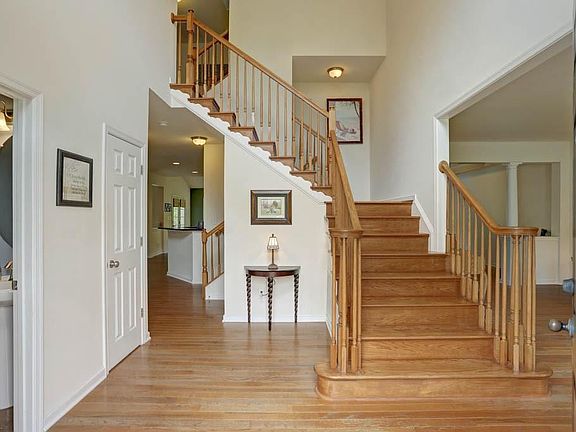 Spacious and Open Home in sought after Stonehouse Glen. This Fairchild Model has 5 bedrooms and 3.5 Bathrooms. Huge Master Suite with Sitting Room, His and Her's Closets and Master Bath with Garden Tub. Third Floor has Bedroom and Bathroom as well as Flex Room as Sitting Room or Rec Area. Gourmet Kitchen opens to Family Room and Sun Room with Wooded View from Sun Room and from Large 16x20 Deck. This 0.86 acre yard also has Invisible Fence. You will love this home!