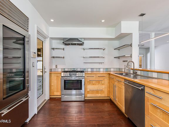 Move-in ready 3 bed, 2 bath home with Andersen doors and windows that fill the home with natural light and highlight dark maple floors with 4 ½'' baseboards. Enjoy defined living and dining areas, a modern kitchen with Sub-Zero fridge, JenAir gas range, pro dishwasher, and butcher block countertops. A bonus room off the kitchen works as a oversized pantry, office, or craft room. The primary bedroom offers private access to the backyard with a diving pool and grassy play area. 2 car Carport could easily be converted to garage. Set on a large lot in prime Arcadia Lite/Camelback Corridor, minutes from top restaurants, nightlife, and shopping.