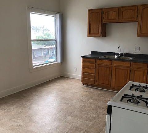This is an upstairs 1 bedroom corner unit with high ceilings, tons of natural light, hardwood floors throughout, and many oversized dual pane windows. There is a separate large kitchen with a huge pantry, room for a dining table, gas stove and fridge (no dishwasher, no microwave). The bedroom comes with a large walk-in closet with and en-suite updated bathroom with a spacious shower over tub. There is a gas heater in the living room (no a/c). The apartment comes with 1 assigned parking space in the parking lot directly behind the building. There are 3 Laundromats within a mile.
