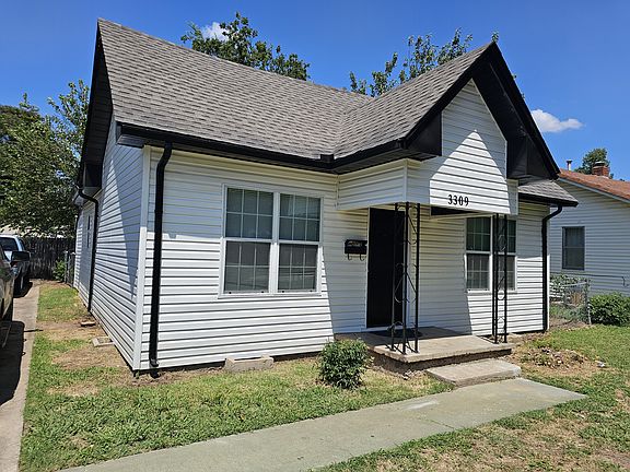 Discover this beautifully updated 2 bed, 1 bath, 912 sqft home featuring a new roof, new windows, new siding, new central heat and air, and fresh interior/exterior paint, new lighting and fixtures. Enjoy newly installed vinyl plank flooring in the kitchen, laundry room, and bathroom, with beautiful dark hardwood flooring in the living room, dining room, and bedrooms. The kitchen boasts a subway-tiled backsplash with butcher block counters, and a new gas oven/range, and the bathroom features a subway-tiled tub/shower surround. Additional features include washer/dryer hook-ups, a large fenced backyard, long paved driveway for parking and a shed for extra storage and convenience.