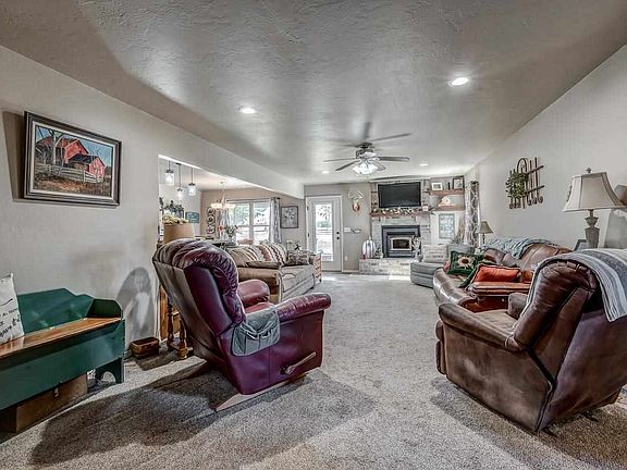 Highly coveted small acreage with a beautiful newer home and a shop building! Look no further! This property is ready for you to enjoy 3 bedrooms plus an office, 2 baths, split floor plan, granite kitchen countertops with almost new appliances, and a large comfy living room with new carpet and a Buck wood stove for cozy winter heating. The water source is a good well with a Culligan water softener and reverse osmosis water filter at the kitchen sink. The current Sellers added a 30' x 40' shop building with insulation for storage of all your tools and equipment. The exterior of the house has been painted recently and the roof is only 1 year old. An above ground safe room has been added to the 3 car garage and an additional 11' x 15' concrete area has been added to the patio for outdoor entertaining. You can also sit around the outdoor firepit with friends and family enjoying beautiful evenings. If you have pets you will love the large fenced area behind the house with a large dog house. Gardeners will also love the garden area currently growing produce for the owners. It's a wonderful property so don't hesitate to look at it right away!