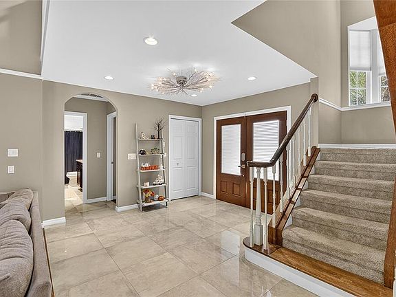 Pavered lanaiOutdoor kitchenSpacious laundry roomQuartz countertopsDouble french doorsTanning shelfOpen-concept layout