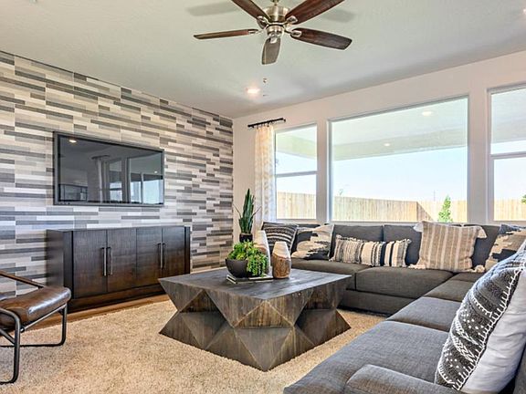 Lennar New Construction - Overture 3240 B - Coronet Series at Gossamer Grove in Shafter, CA. This two-story home hosts an open layout shared between the Great Room, kitchen and dining room on the first level, while a patio offers space for indoor-outdoor living. A bedroom off the foyer works well as a space for overnight guests or a home office, while the remaining four bedrooms and a loft are situated on the second floor. Coronet Series is a collection of new homes for sale at the Gossamer Grove masterplan community in Shafter, CA. Offering a laidback and family-friendly atmosphere with engaging onsite amenities, the community is surrounded by restaurants, shopping centers and is less than four miles from Studio Movie Grill, River Lakes Golf Course and Meadows Field Airport. Homeowners can enjoy a variety of onsite amenities and students of the community attend the top-rated Norris School District.