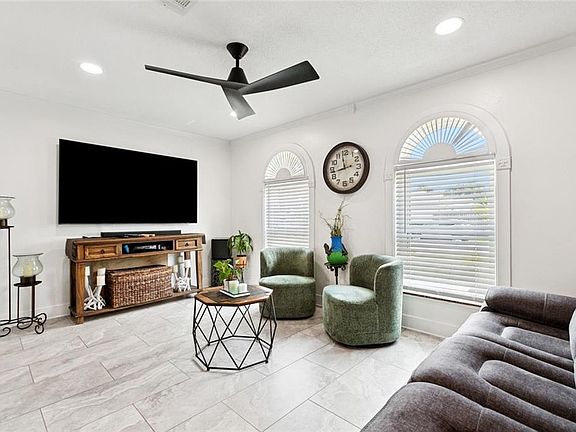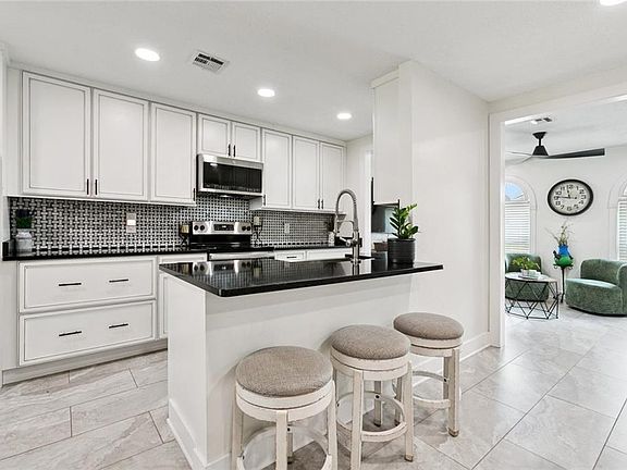 Large backyardCovered patioStone countertopsFresh paintClean modern finishesUpdated windowsCrown molding