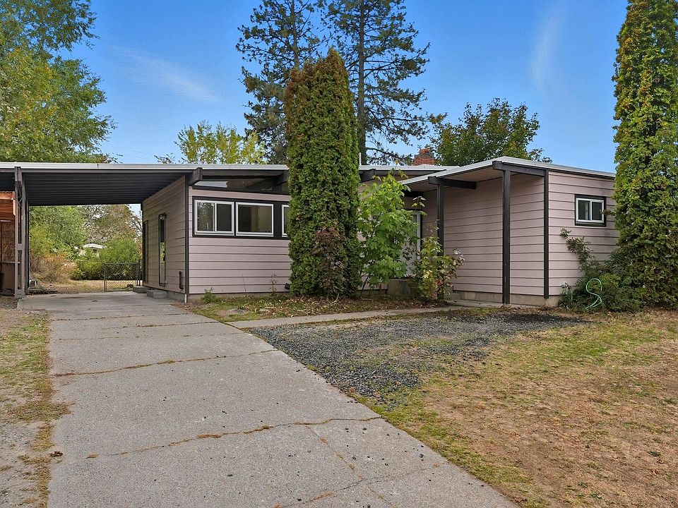 Classic 1955 rancher with fresh updates throughout. Enjoy new carpet, LVP flooring, and a brand-new granite kitchen with stainless appliances. The main level offers hardwood accents, natural woodwork, and a bright living room plus three bedrooms, 1.5 baths, and 1,136 sq ft. Full basement with rec room, wet bar, workshop, and laundry and room to add an additional bedroom and bathroom. Oil forced air heat, central A/C, and fenced backyard on a 7,840 sq ft lot. Approx. 2,272 total sq ft with carport parking and great access to Westview, Flett, and Shadle Park.