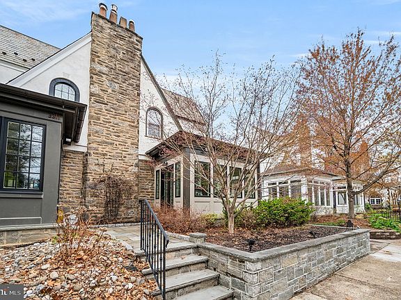 Welcome to this beautifully updated Tudor twin on one of East Falls’ most beloved streets—Penn Street. Beautifully detailed stonework borders the vibrant front garden, guiding you along a classic slate walkway to a bright and airy enclosed sun porch, featuring walls of windows, elegant slate tile flooring, and a warm cedar-paneled ceiling. Step through the French doors into a space that’s equal parts stylish and inviting. Sunlight floods the open layout, highlighting original hardwood floors and thoughtful design choices throughout. The living room features textured grass cloth walls, a charming bay window, and a cozy corner fireplace clad in stone. The dining area is surrounded by natural light and opens directly into a stunning chef’s kitchen. Outfitted with sleek soapstone countertops, a subway tile backsplash, stainless steel appliances, and custom cabinetry, this kitchen is both functional and elegant. Just off the kitchen, a mudroom leads to a private outdoor retreat with a pergola, flagstone patio, turf yard, and thoughtfully curated garden beds—all enclosed by privacy fencing. Upstairs, you’ll find three delightful bedrooms and a tastefully renovated hall bath. The finished lower level adds fantastic bonus space with a cozy media/family room, a large cedar closet, a powder room, laundry, and a finished utility/storage area. A shared driveway leads to your private garage—rare and valuable in this part of the city. Ideally situated between two train lines, close to major bus routes, highways, and a short walk to East Falls’ buzzing cafes and restaurants, this home offers the best of city convenience with the feel of a quiet village. A rare blend of old-world charm and thoughtful updates—this home is truly a standout.