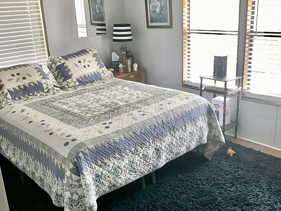 Water and sewer included through Bedrock Communities mobile home park. Renter pays electric, internet, tv. This mobile home is Not in a flood evacuation zone. Central A/C and heat. No smoking inside. No cats. Pictures of furnishings subject to change. Washer, dryer, dishwasher, refrigerator, range, window blinds included. If furnished, dinnerware, silverware, cookware, coffee maker, blender, toaster, microwave, towels and sheets may be included. $50 background check fee and verification of income required upon application to lease. No subleasing. No overnight guests more than 15 days consecutively, or 30 days annually. No parking on street or grass. Driveway fits 3 cars. No additional parking available. No boat, trailer or camper storage on property.