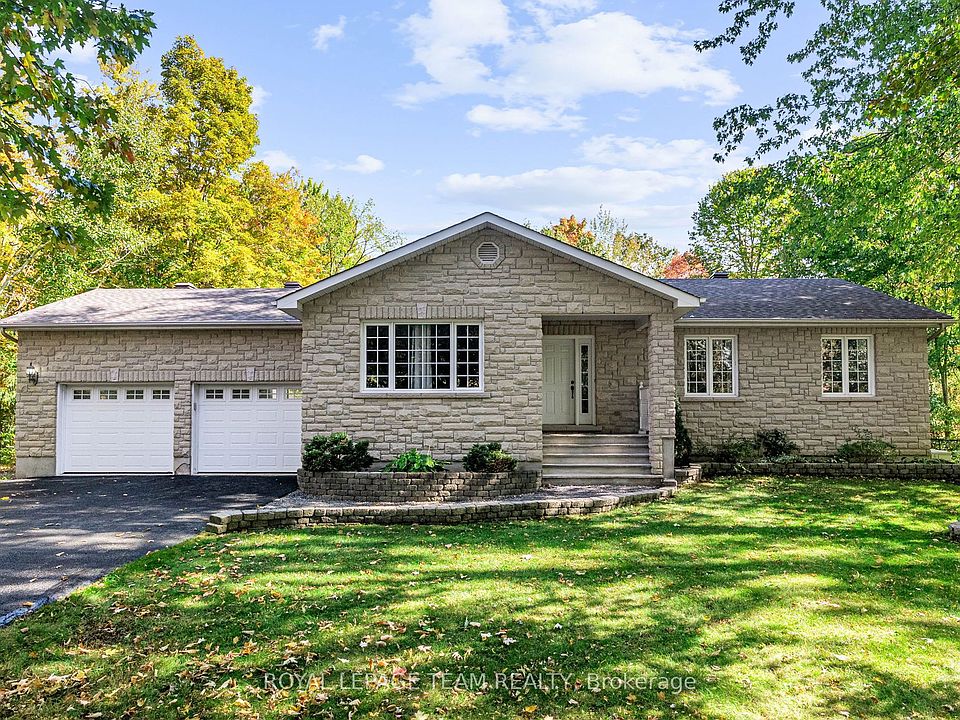 Welcome to 3309 Wild Cherry Drive - An impressive 3+2 bedroom, 3-bath bungalow with a heated double-car garage, pool, and hot tub, set on a private 0.6 acre lot with no rear neighbours in the heart of Osgoode. Built in 2002, this stone-exterior home features hardwood floors and a bright open-concept kitchen and dining area, a spacious living room, and a separate family room filled with natural light. The primary bedroom offers patio doors to the deck, pool, and hot tub, plus a walk-in closet and 3-piece ensuite. Two additional bedrooms, a full bath, laundry and inside access to the heated and insulated double garage complete the main level. The fully finished basement (2024) adds two bedrooms, a large rec room with cozy gas fireplace, flexible gym/storage space and roughed-in plumbing for a full bath and wet bar. Outdoors is an entertainers dream: heated 24-ft saltwater pool (2020), hot tub (2019), and a 19x20 deck with dining gazebo, grill gazebo, and included natural gas BBQ. The fully fenced yard is wired for dogs and includes a 10x10 outdoor kennel, with direct access to ATV and snowmobile trails. A wired 14x16 shed with lean-tos adds excellent storage and hobby space. Recent updates include: basement renovation with flooring, paint, and bathroom rough-in (2024); Generac whole-home generator (2024); sump pump and backup (2023); washer/dryer (2023); roof with 50-year shingles (2021); saltwater pool and equipment (2020); hot tub (2019); insulated garage doors with heater (2019/2020); furnace (2010) & more! Surrounded by mature trees and located in a welcoming Osgoode community close to schools, shops, nature trails, parks, and the 416, this property offers both tranquility and convenience. Dont miss your chance to enjoy the best of country living with modern comfort found here. Minimum 48 hour irrevocable on all written and signed offers.