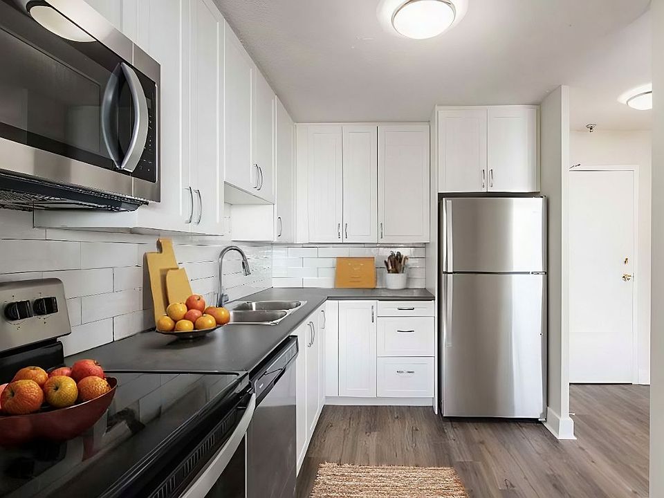 Fully renovated and spacious suites with modern open concept kitchen featuring chrome accents, new stainless steel under mount sink with tall sink faucet, modern cabinetry, ceramic tiles. Stainless-steel Refrigerator, Stove and over the range Microwave. Fully renovated bathrooms include upgraded fixtures, new bath tub, ceramic tiles, and new vanity. The unit is freshly painted with modern color palette, has newly re-finished hardwood / parquet flooring in living area, brand-new light and hardware fixtures. Key Building Amenities:Water includedDedicated and friendly on-site management teamSecured laundry facilityPet friendlyOutdoor parking ($)Storage lockers ($)Visitor parking availableControlled access and surveillance camerasEnhanced cleaning procedures in high traffic areasThorough cleaning of every suite before you move-inOur on-site leasing consultants are available to tour you through building amenities and available suites via a personal video call.Disclaimer - The unit photos and virtual tours displayed here are for representation purposes only. Available units and prices may vary based on unit location in building, unit size, features, finishes, floor plan and occupancy date. Prices shown are starting prices for each unit type and are subject to change without notice. Errors & Omissions excepted.