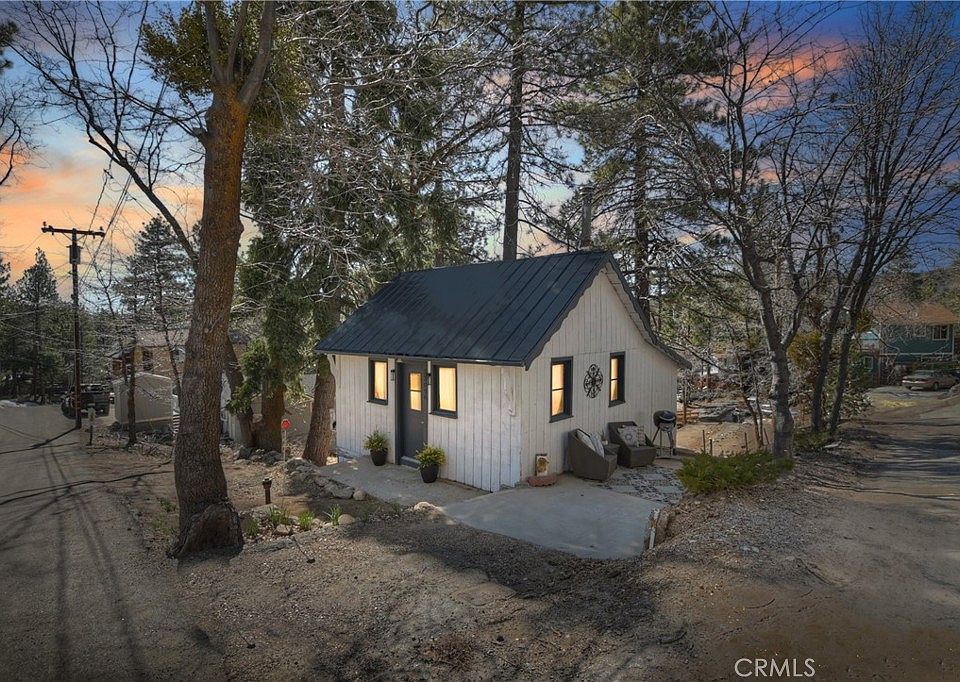 Affordable, Adorable, and Updated Vintage Cabin. Can be used as a full time residence or as an income producing short term rental. This home has two designated parking spots and easy access with level entry. Once inside you'll instantly fall in love with the original charm that has been restored. The living area is enhanced with original wooden beamed ceilings. Your focal point is a vintage wood burning stove that keeps you warm and cozy on a cold mountain night. A mini split was added for extra heating and cooling. Flooring has been updated throughout the home and the kitchen is newer. On the main living area you'll find an art room surrounded by multiple windows giving you a 180 degree view of inspiration. Another area is being used as a separate private office space. There is a bathroom on the main floor that has been updated and the shower has new tile work. Downstairs you'll find the sleeping quarters along with another quarter bath. Located just minutes from Snow Valley Ski Resort and hiking trails. Don't forget to take a drive by Arrowbear lake located right around the corner. Home does have 2 kitchens and a bathroom on each level so the possibilities are endless. Come check out this inexpensive cutie today and get ready for summer in the mountains!
