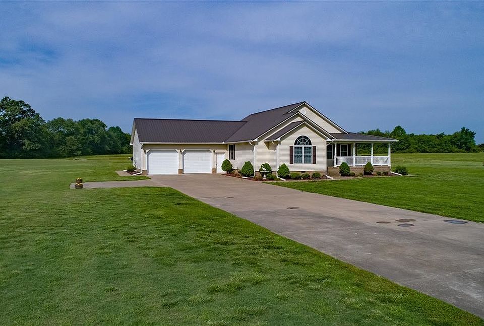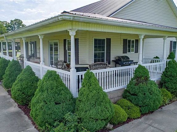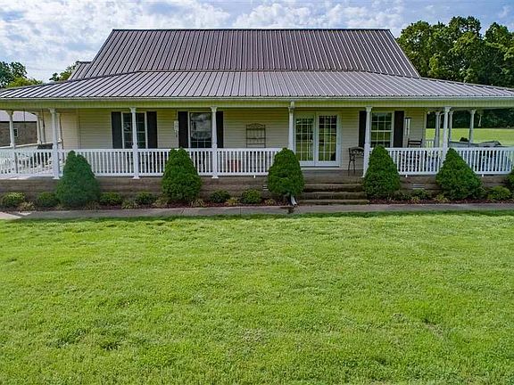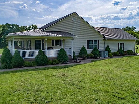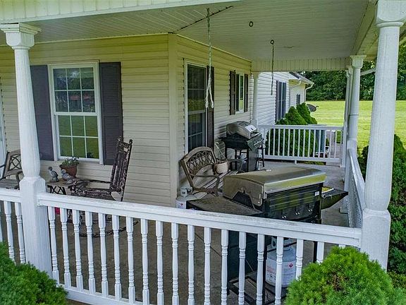 Approximately 17 acres with pond and land backs up to 641. Country style home with covered wrap around porch. Porch has concrete floor and dual entrances. Wood and glass front door to add to the country feeling. Spacious family room with hardwood floor and numerous windows for natural light. Kitchen has dining/ breakfast area and countertop extends to create a bar for eating or food preparation. Stainless steel appliances in kitchen. Master bedroom is separated from other two bedrooms. Utility room with cabinets. Two car attached garage. Concrete driveway. 40 x40 shop with electricity, water, drain in floor and gas heat. Two garage doors on shop. Immediate possession upon closing.