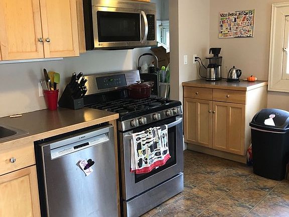 This beautiful, furnished three bedroom apartment is perfect for graduate students or professionals. Many upgrades including a renovated eat-in kitchen including dishwasher and new hardwood floors. Spacious bedrooms, large enough to share. In-unit washer/dryer and three parking spaces included.