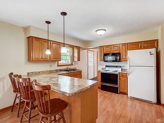 Classic brick ranch with large flat fenced yard - neat and tidy and freshly painted - shows pride of ownership. Gorgeous oak trim and doors are solid and well made. Separate living room, dining room, and family room with wood-burning fireplace and stone mantel provide plenty of space to entertain or just relax. Spacious bedrooms are just what you need when it is time to wind down. Plus, a full unfinished basement gives you room to grow. Step outside and find room to run and play in the yard complete with a fully wired, heated and insulated "pet condo" for your 4-legged friends. A concrete-floored 12 x 16 shed with two sets of large slider doors can store equipment or become your hideaway! Waterline in place but not connected to refrigerator. Kitchen appliances stay, Dishwasher never used, and basement is plumbed for a water softener. This home has been updated throughout and thoughtfully maintained since purchased in 2009 - completely ready for you to move right in! Windows, Dishwasher & Garbage Disposal 2009; Roof 2010; Water Heater, Siding, Facia, Gutters, Downspouts 2020; Heat Pump, A/C, and Well Pump 2021. Air Compressor in garage does not convey. Woodburning Fireplace believed operable but is not warranted. It does not have a liner and has not been used by owner. Taxes reflect Homestead Exemption. Room dimensions not guaranteed - we rely on county records and homeowner for room measurements.