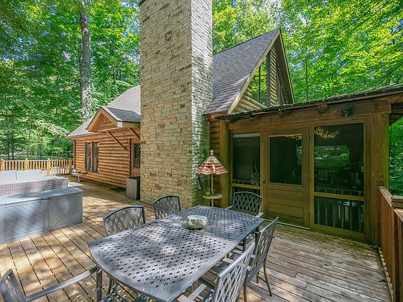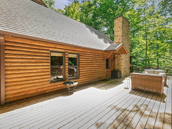 Beautifully renovated 3BR/2BA cabin in the gated community of Starr Valley Ranch, offering wooded acreage on 80-acre Clear Lake. Enjoy a private sandy beach, dock, fishing, swimming, kayaking, firepit, and trails through the forest. The association caretaker maintains beach and roads. Home upgrades include new LVT flooring, roof, cedar deck (15x50), stone fireplace with marble hearth, redesigned kitchen with hickory cabinets, live-edge bar, new appliances, and RO system. Bathrooms feature marble vanities, heated washlet seats, and tiled oversized shower. Additional updates: Navien tankless water heater, water softener, whole-house generator, security system, automated mosquito misting, mini-split, buried propane tank, and more. A rare blend of modern comfort, privacy, and natural beauty. A short drive to local wineries & Lake Michigan. Association has first right of refusal. Decorative ceiling fixtures will not stay with cabin. Mirror in the 2nd level bath will be replaced