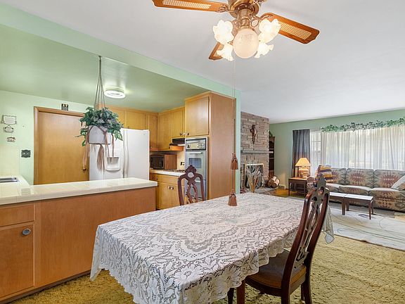 Welcome home to this mid-century modern home with a large living room featuring wood burning fireplace, kitchen open to dining area, and 3 large bedrooms. The one car attached garage is heated and air conditioned. It has been used as living space and houses washer/dryer and 1/2 bath. The backyard is fully fenced and has plenty of space for all your summer entertaining. Come take a look and make this mid-century home your dream home. This home has been maintained but is being sold As Is.