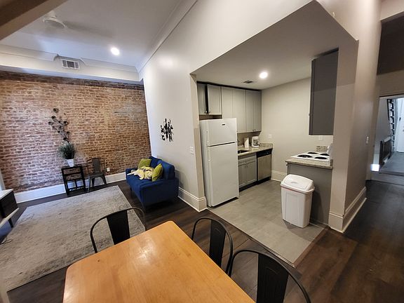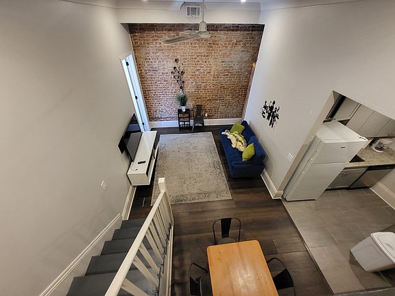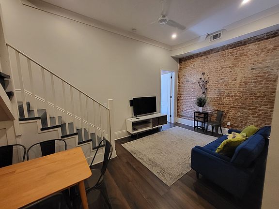 Features designer furnishings. Includes exposed brick walls, hardwood floors and large light-lit windows.