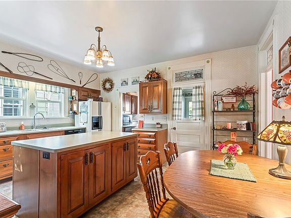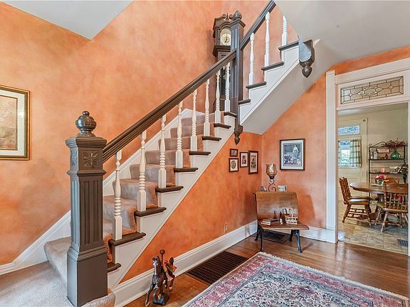 Charm abounds in this 3-story home in downtown Beaver. Enjoy the new covered front porch and then step into the foyer for a glimpse of the beautiful staircase. The expansive eat-in kitchen, which includes an island and lovely transom windows over the doorway is a homeowner's dream. There is also a pantry off of the kitchen and a mud room leading to the back Trex deck. The large living room has lots of natural light - the dining room has a wood accent wall with built in storage and fireplace. There is also a family room on the main floor which leads to the sunroom. Half bath, on the main floor. Second floor has 3 nice size bedrooms and a newer full bath with tiled shower. The finished third floor has a full bath, its own wall mounted heat pump and a large storage closet. Full walk out basement has endless possibilities and lots of storage. Paver walk from the back leads to a 2 car, detached, garage.
