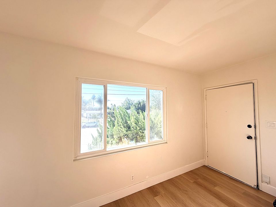 Charming 2-bedroom, 1-bath home just minutes from the San Diego Naval Base. And located on a wide, quiet, and safe street, providing a peaceful living environment. Just finished new renovated kitchen, brand-new hardwood floors, no carpet, fresh paint, and stylish modern finishes. With 1 off-street parking space, large enclosed shared yard, and on-site coin laundry. Actual unit may vary slightly from the photos shown. Easy access to I-5 for quick commutes.