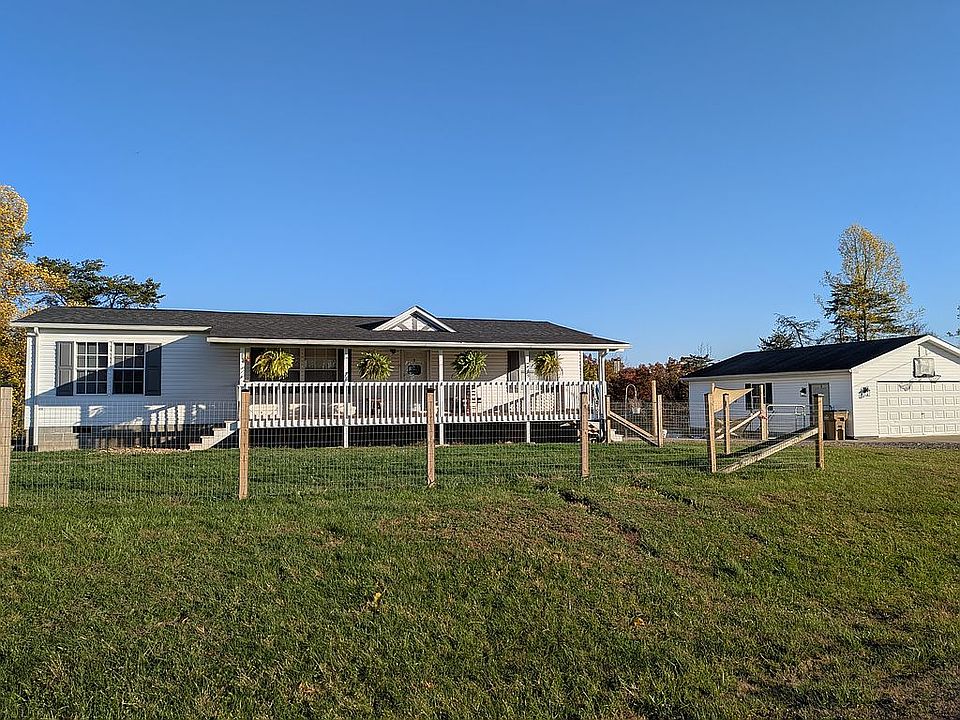 Comfortable 3 bed/2 bath manufactured home on permanent foundation in a country setting featuring a large front porch and a new composite back deck. A large sliding glass door leading to the new deck has been installed, bathing the open concept living area with natural light. Many aspects of this home are new. New in 2024: built-in bench seating with storage in dining area, new pantry, paint throughout, LVP flooring throughout, all appliances including washer/dryer combo, cabinetry (kitchen and baths), sinks (kitchen and baths), master bath shower enclosure, both toilets, lighting throughout including ceiling fans and some with remote and/or Bluetooth speakers and other special effects, cordless 2 in blinds in most windows, sliding glass door with interior blinds and screen, back deck, steps to back laundry door, gate and steps on yard side of front porch, crawl space access doors, fence and gates. New in 2023: Roof and water heater. The garage is 24x30 and has new separate electrical service, with all new wiring, insulation and sheetrock. Concrete patio area off the garage on one side and an enclosed 11x30 lean-to with cement floor on the other. Currently, there are 4 dog pens each having its own access to the lean-to and is wired for heat lamps. Dog pens can be removed upon buyers preference. Concrete driveway with multiple parking spots. HUD Engineering Certification Report on hand for foundation as well as the Home Inspection report from December 2023. 14 miles to Nucor, 10 miles to Toyota, less than 20 miles to shopping in Teays Valley, Hurricane and Barboursville. Closing costs/down payment assistance considered.