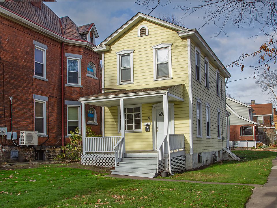 Full two-story house located on a cheery Regent Square street corner. Features ample space for living, living room & dining room. Fully equipped kitchen. Two bedrooms and a full bath. Exquisite hardwood floors. Large front porch and small rear porch. Nice green yard. Dogs and cats are allowed. Off-street parking available. In Unit washer & Dryer. Great natural morning light.