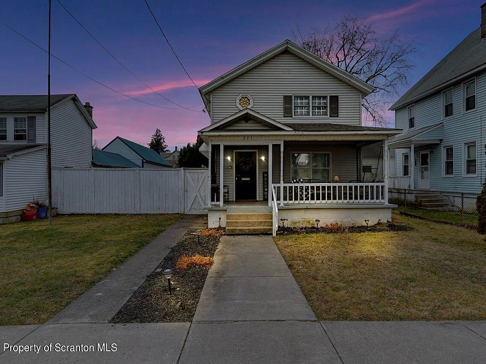 Delightful North Scranton home is definitely bigger than it looks. The screened front porch offers a welcoming atmosphere, then step inside to a cozy ambiance created by the two-sided fireplace that separates two living room areas. You'll have plenty of space to create cherished memories. An open kitchen with gorgeous brick accents and center island is a chef's delight, and equipped with ample cabinet and shelf space for all your culinary needs. Both living rooms and all bedrooms have been recently enhanced with new carpeting, providing a fresh and inviting feel throughout, so kick off your shoes and unwind in style. Each floor also has modern bathrooms. Outside, a fenced rear yard offers privacy with plenty of space on the covered side porch and rear deck for morning coffee or hosting summer pool parties. Enjoy easy access to shopping, dining, entertainment, public transportation and more, mere minutes from your front door. Seller including a one year America's Preferred Home Warranty for added peace of mind.