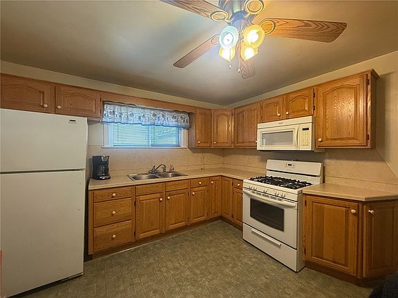 The living room has nice carpet and is comfortable. The kitchen has laminate flooring in great condition and all the appliances will stay. The hardwood floors are original and beautiful. The bedrooms are a comfortable size with nice closets. Bathroom style is timeless and in great condition. Full dry basement has high ceilings that would make finishing part or all of it easy. The backyard is fully fenced to keep your little ones safe. Awesome sun room on the back of the house. , don't wait to take a look.