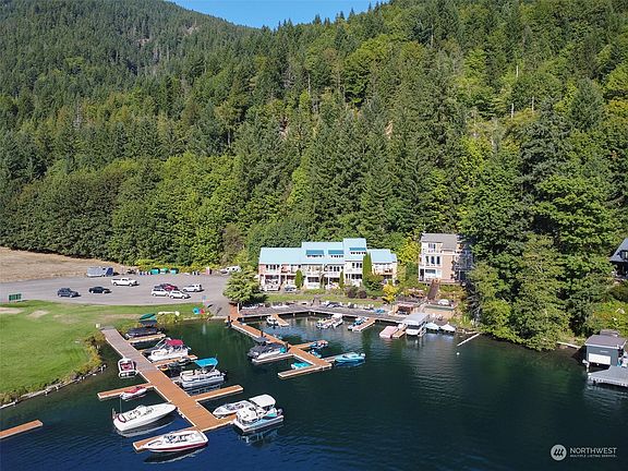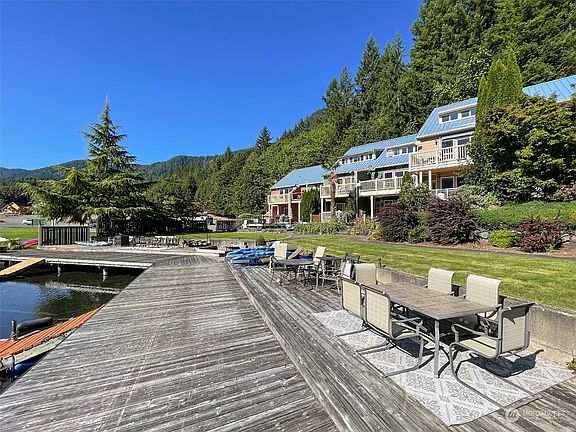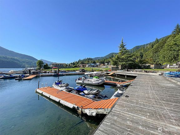 Bring your kayaks & paddle boards to this gated Lake Sutherland retreat. Soak in the sun on the dock, launch your boat or jet skis from your slip. Take in the sunsets as you BBQ from the balcony deck. High-end finishes in this 3-level condo. Hickory wood & Travertine tile floors, stainless appliances, granite & marble counters, propane fireplace, ductless heat pumps, walk-in closet with built-ins. The lower level makes a great separate living space with a kitchenette, BR, BA, office & Murphy bed. Storage shed & RV/boat parking. Come and enjoy the lake life!