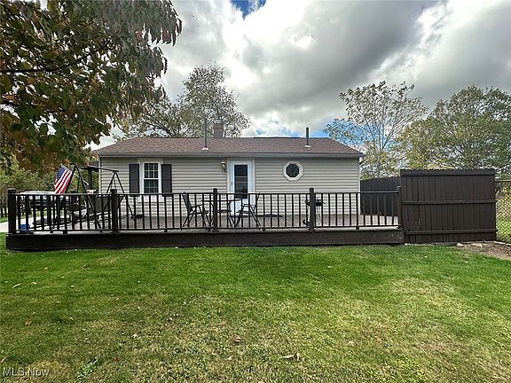 Cozy two-bedroom, one bath ranch. Nicely updated with a large outdoor deck. New bath remodel with updates include: furnace 2018, CA 2015, roof 2020, sewer stack 2024, concrete sidewalk 2024, large 20' storage shed. Open floor plan from kitchen to living room with a gas log fireplace and a bar. Good condition.