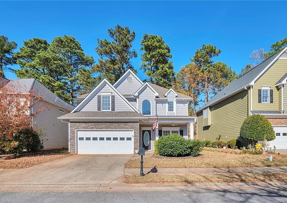 Fantastic 4 bedroom, 3 bathroom contemporary home near the Towne Lake Community offers a bright kitchen with views to the breakfast area and the spacious living room with a cozy fireplace. Also on the main floor is a bedroom and full bathroom ideal for guests. Upstairs you will find the massive master bedroom that includes a beautiful en-suite bathroom and a walk-in closet. Additionally, there are two bedrooms, a laundry room, and a spacious loft. Outside you will find a patio and lawn space in the fenced backyard. Neighborhood Pool, Close to shopping, dining, and Lake Allatoona!