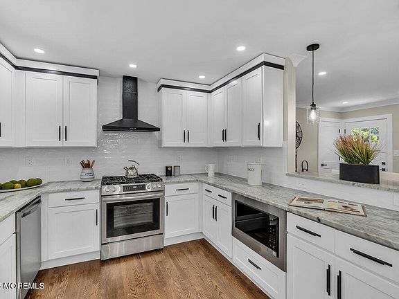 Step into this fully remodeled 3BR, 2BA ranch in the highly desirable Lake Riviera section of Brick, offering over 1,200 sq. ft. of luxury living. The chef's kitchen is a showstopper with stone countertops, premium appliances, and a sleek bar area ideal for entertaining. An open-concept layout highlights solid oak flooring, designer fixtures, and upscale finishes throughout and custom lighting. The primary suite provides a private retreat with a spa-inspired bath, while the second full bath is equally refined. With a brand-new HVAC system and modern upgrades inside and out, this move-in ready home perfectly blends comfort, style, and convenience—just minutes from parks, shopping, dining, and the Jersey Shore. Move-in Ready and truly turn-key, This home is a Must See!