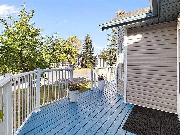 Step into comfort, style, and convenience with this beautifully maintained, fully developed 4-level split, perfectly tucked away on a quiet cul-de-sac in the sought-after community of Coventry Hills. This home shows true pride of ownership and comes with major updates for your peace of mind, including a new roof (2025), vinyl siding (2025), main living room windows (2025), high-efficiency furnace (2025), quartz countertops (2019), flooring (2017), washer/dryer (2023), and exterior railing (2016). Step inside through the welcoming foyer with large closets, leading directly to a comfortable living room featuring vaulted ceilings for an open, airy feel — perfect for relaxing or entertaining. From there, flow into the updated kitchen with modern appliances, ample storage, quartz counters, and a bright dining area ideal for gatherings. Upstairs, discover two generous bedrooms and an updated four-piece bathroom. Descend to the third level for a cozy TV room with a fireplace, a second living area, a third bedroom, and a convenient three-piece bath. The fourth level offers even more functionality with a large mechanical room, laundry area, and extra storage — including space for an office, hobby room, or potential fourth bedroom. Step outside to your charming backyard retreat, boasting a spacious multi-level deck ideal for outdoor entertaining, complete with privacy screens, a BBQ area, and a side door easy access from the home. Enjoy mature trees providing natural shade, a convenient storage shed, and a paved back alleyway with additional parking at the back, plus garage potential (subject to city approval). A welcoming front verandah and front lawn add to the home’s curb appeal. Located just steps from elementary schools and close to junior and senior high schools, shopping, dining, golf, transit, the Vivo recreational Centre, and major routes, this home truly has it all. Don’t miss your chance to make this wonderful property yours — schedule a showing today!