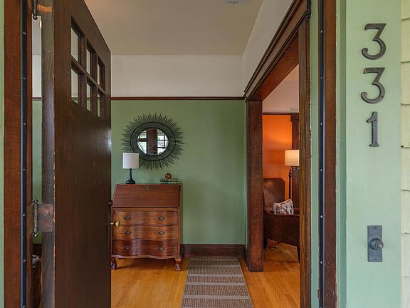 This meticulously maintained Craftsman home is a shining example of preserving the beautiful character-filled craftsmanship poured into the architecture of that era. A charming covered porch welcomes you before entering the home where you are greeted by glistening hardwood floors, picture-rail molding, and original windows. The living room boasts a newer ceiling fan, picture-rail molding, beautifully maintained oversized wood base molding, and 3 picturesque windows. The living room seamlessly flows into the dining room featuring an original built-in window bench lining the entire north wall, a stunning stone decorative fireplace with a wood mantel, and an original built-in buffet cabinet with leaded glass doors. Traditional plate-rail molding and a beautiful custom hanging light complete this space. From the dining room, you come to the first of the 2 good-sized bedrooms. The hardwood floors continue in this room with picture-rail molding, a newer ceiling fan, and pull-down access to the attic. Passing through the dining room the updated kitchen awaits. A delight for any level of the culinary arts, this kitchen boasts granite countertops, a classic white subway tile backsplash, a slide-in Samsung 5-burner gas range with a vent hood, an abundance of storage and counter space and the Franke by Villeroy and Boch Double-Bowl Apron sink will be the envy of your neighbors. Continuing through the kitchen, you'll find the fully remodeled bathroom with recessed lighting, a glass and subway tile shower enclosure, a hexagon tiled floor, and a pedestal sink. The 2nd bedroom is to the right of the bathroom and has original Douglas fir hardwood flooring, a ceiling fan, and a good-sized closet. Between the kitchen and bedroom is a charming library/sitting area with original Douglas fir floors that lead you through French doors to the exceptional pergola-covered wood deck overlooking the inviting salt-water pool below. The backyard is a retreat unto its own with sunset views, and a concrete patio area, perfect for barbecuing and enjoying a meal poolside. There is also an outdoor shower enclosure to rinse off after enjoying the pool. Whether soaking in the exceptional backyard space or the warmth and comfort of the character-filled interior, this home is one not to be missed!