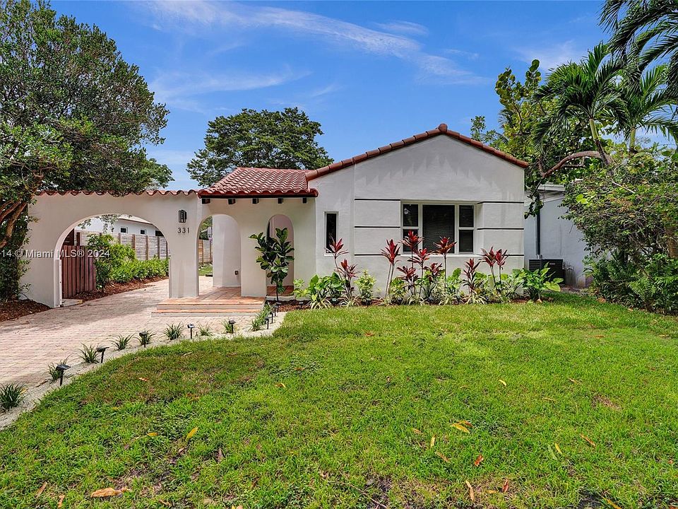 Charming Spanish Revival in the heart of El Portal. Updated with a modern feel while keeping unique characteristics of the late 1930’s throughout. Entry Foyer opens up to oversized living & seating area with an original fireplace & built-ins. Steps away kitchen has been updated with stone tops & ss appliances, ample countertop space & storage. Escape to the primary also generous in size with private bath & spacious closet. Natural light streams through 2nd Bedroom strategically positioned in the house. Sliding doors off the den opens to 500sq ft deck. Endless opportunities with this oversized 50x138 lot, zoning allows for guest house to be built including an addition & pool. Parking for up to 3 plus cars. Move in ready with updated roof, hurricane windows & mechanicals.