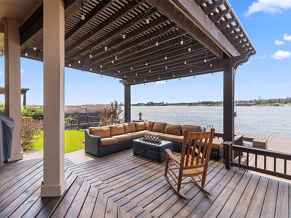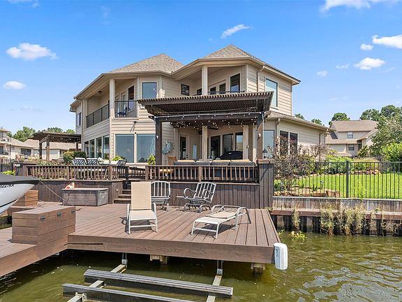 Absolutely Gorgeous and Prime Lake Conroe Waterfront Townhome! This stunning townhome offers direct access to Lake Conroe, combining deep-water access with low-maintenance, energy-efficient living. The home features designer custom touches throughout. The primary bedroom is conveniently located downstairs with a remodeled bathroom and amazing lake views. Upstairs, you'll find a game room or fourth bedroom and two additional bedrooms, each with a private balcony overlooking the lake. The beautifully spacious floor plan creates a vacation-like ambiance. Outdoor living is enhanced with an exquisite custom backyard deck, lush landscaping with a sprinkler system, a new oversized dock, and a two-car garage. Located just minutes from dining, shopping, and all the amenities that make lake life special, this home is move-in ready.