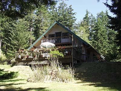 1980 House on 1.8 acres of land, with driveway off the county road, very quiet neighborhood. Olga Water Users Membership. Large L shape Living room with spacious Dining room Kitchen Separate TV Room German Tile Wood Stove 2 Bedrooms. Master bedroom has a balcony with a peak-a-view of the water. Walk- in closets lined with aromatic cedar. 1.75 Baths. The Upstairs Master Bathroom has tub/shower and double sink. The 3/4 bath is on the main floor. Good under-eve storage and large deck.